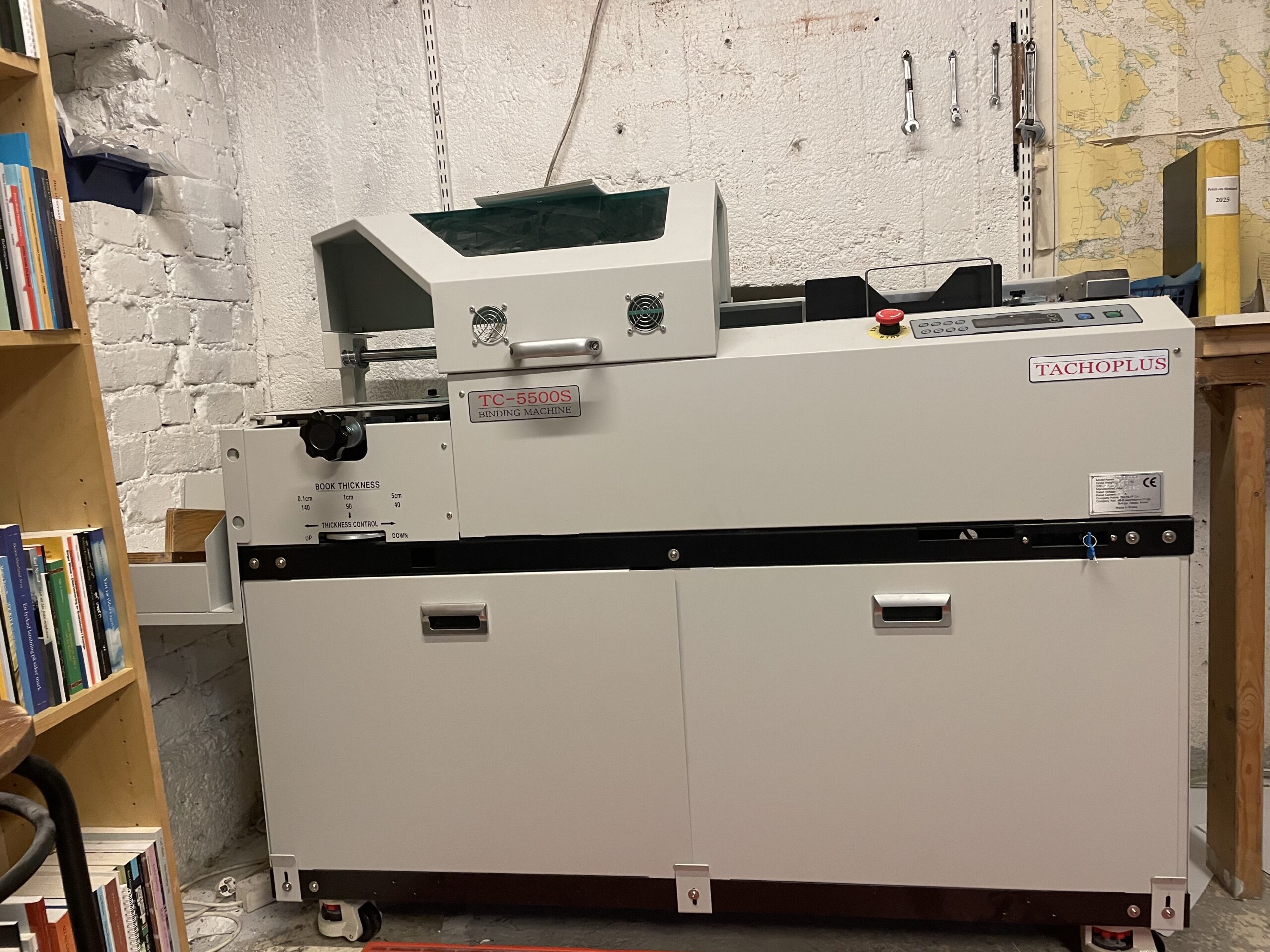 Tachoplus TC-5500 EVA limbindare med rygg och sidolimning med smältlim (EVA). Manuell omslagsmatning. Årsmodell: 2025.