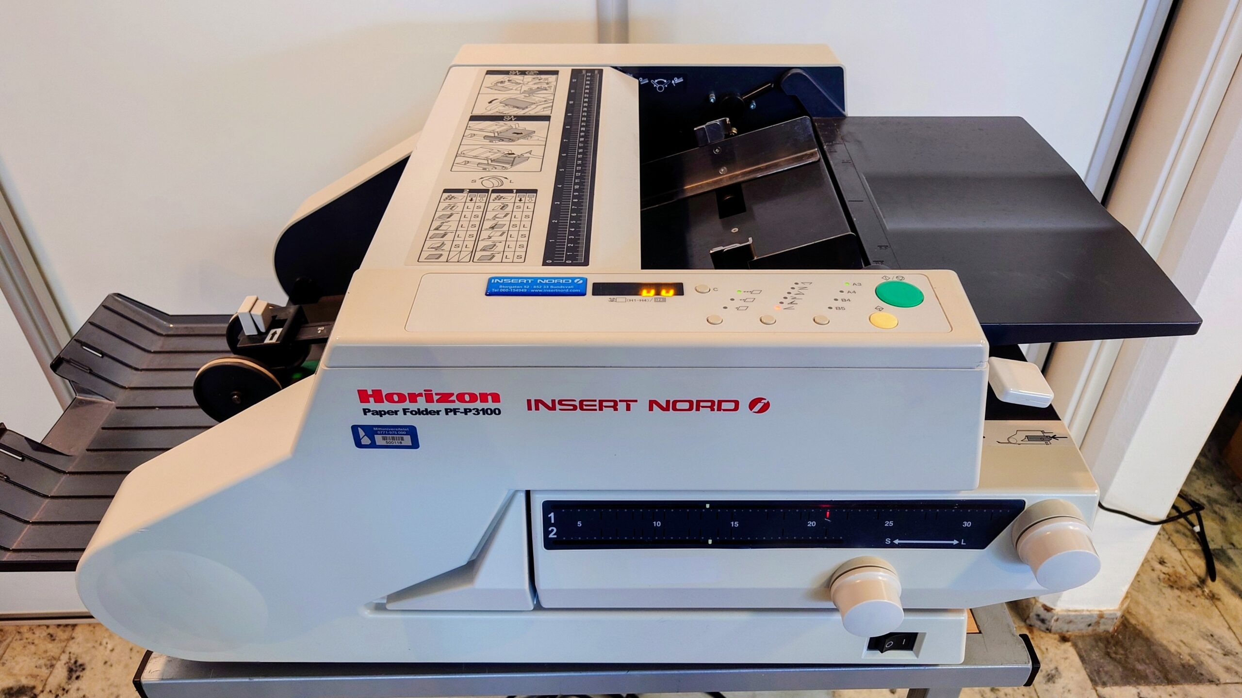 Horizon PFP-P3100 A3 friktionsmatad falsmaskin. Elektrisk avläggarband.